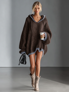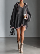 Przytulna i casualowa sukienka mini wykonana z miękkiej dzianiny, charakteryzująca się luźnym krojem, stylowym kapturem i kontrastowymi różowymi detalami. Idealna na wygodne codzienne noszenie z odrobiną zabawy.